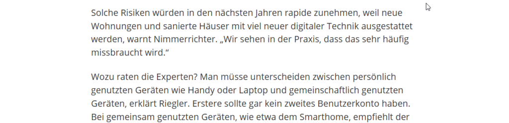 Leider bringt die zunehmende Digitalisierung in Privathaushalten neue Angriffsvektoren mit sich, denen sich die wenigsten bewusst sind. In vielen Haushalten werden technische Systeme von nur einer Person verwaltet. Daraus können Abhängigkeiten entstehen, die im Fall von Trennungen manchmal ausgenutzt werden.