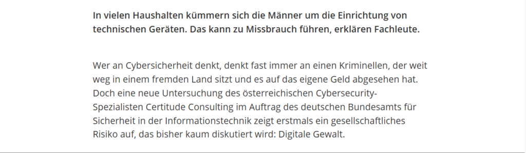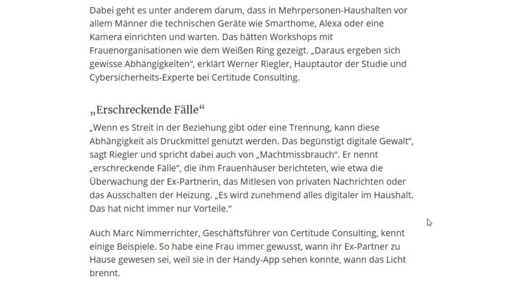 Unfortunately, the increasing digitalization of private households brings with it new attack vectors that few people are aware of. For example, in many households, technical systems are managed by just one person. This can create dependencies that are sometimes exploited in the event of a separation.